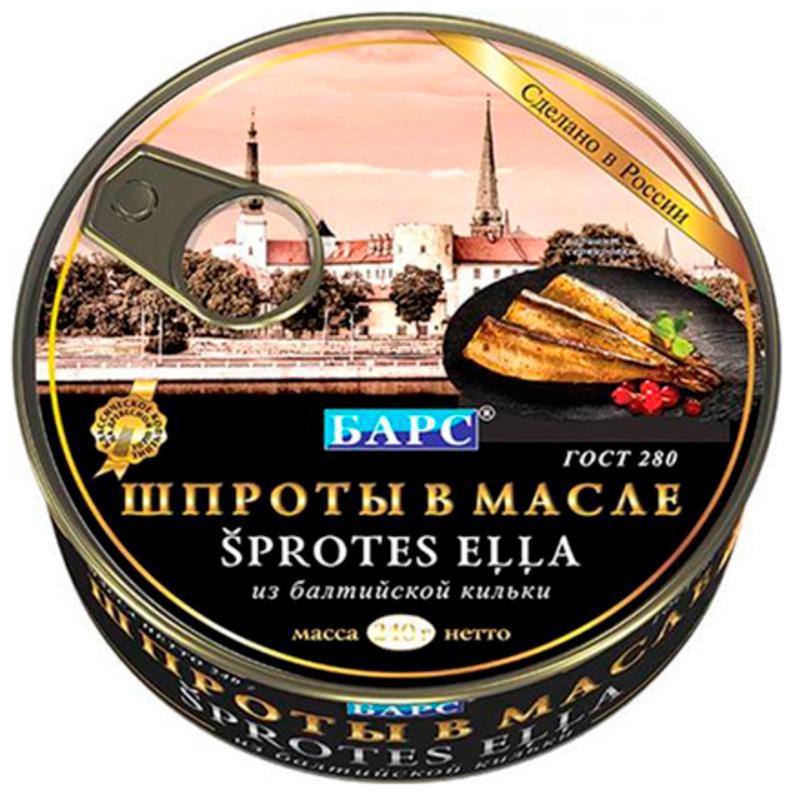 Բարս շպրոտը պատրաստված է բալթիական կիլկայից, ապխտված և պահածոյացված բուսական յուղով։